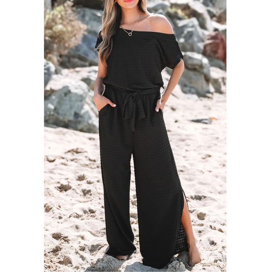 Let Them Stare, Short Sleeve Jumpsuit with Side Slit