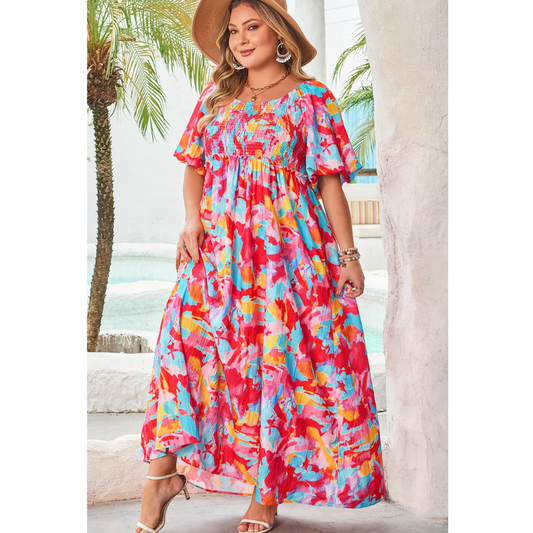 More Beautiful Days Ahead, Short Sleeve Floral Abstract Maxi Dress (1X-4X)