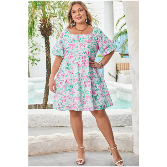 Remember The Feeling, Short Sleeve Floral Dress (1X-4X)