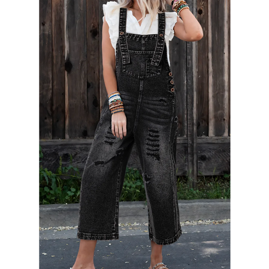Coastal Cool Distressed Denim Overalls