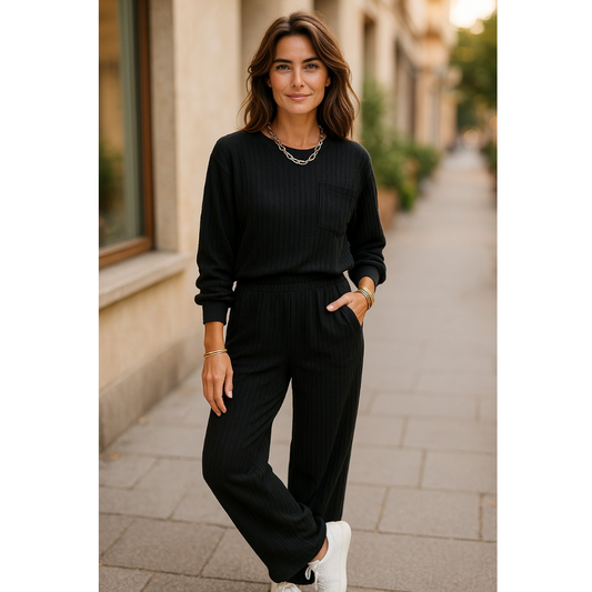 Total Comfort Mode, Waffle Knit Lounge Set – Black