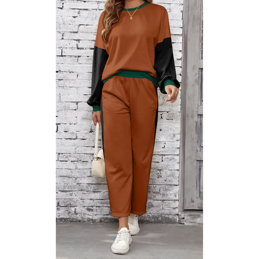 Cozy Colorblock Charm, Button Neck Waffle Knit Top