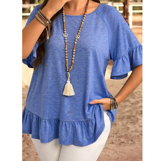Feeling Free, Short Sleeve Ruffle Hem Tunic (1X-4X)