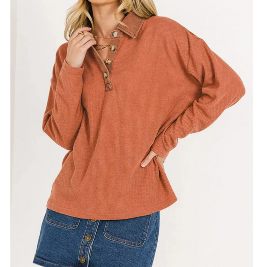 Autumn Clay Button-Up Waffle Top