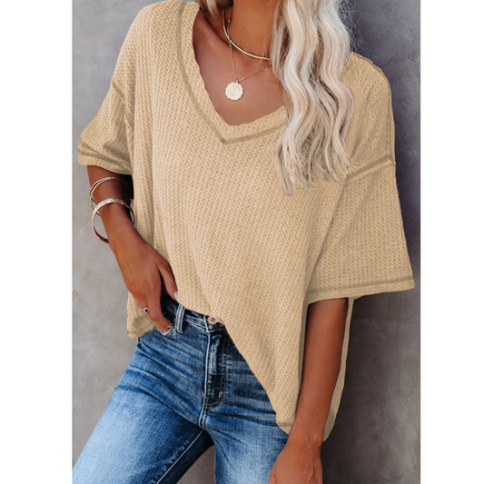 Sold outThe Cozy Waffle Knit V-Neck Top