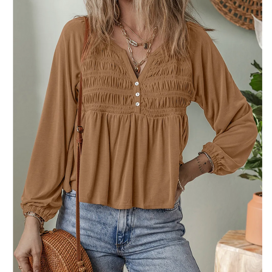 Caramel Breeze Smocked Blouse