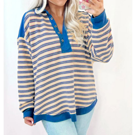 Coastal Stripe Button Pullover