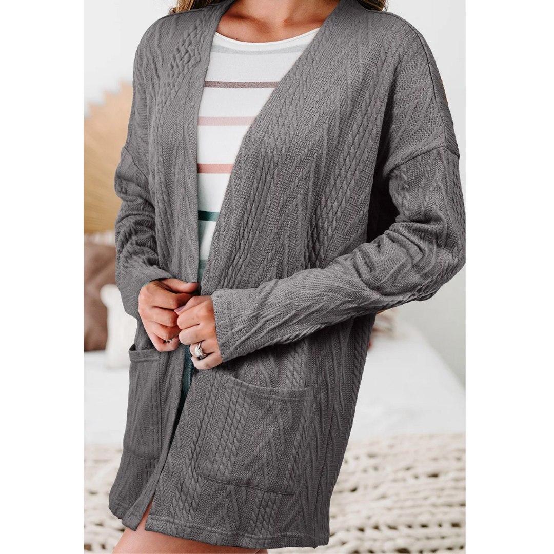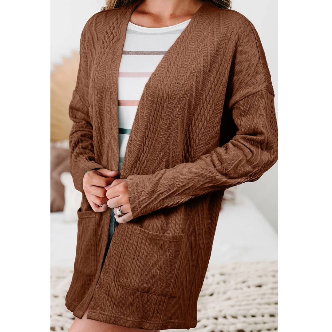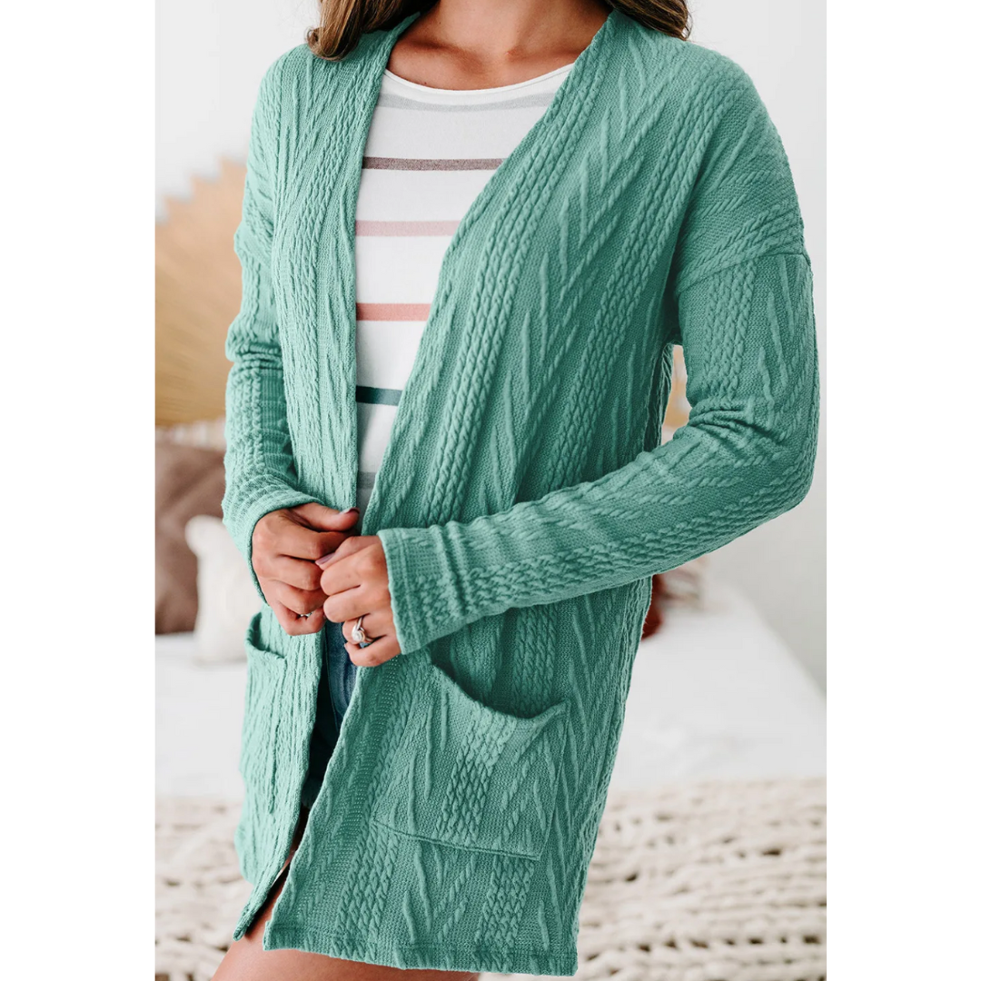 All Is Good, Long Sleeve Cable Knit Light Weight Cardigan with Pockets