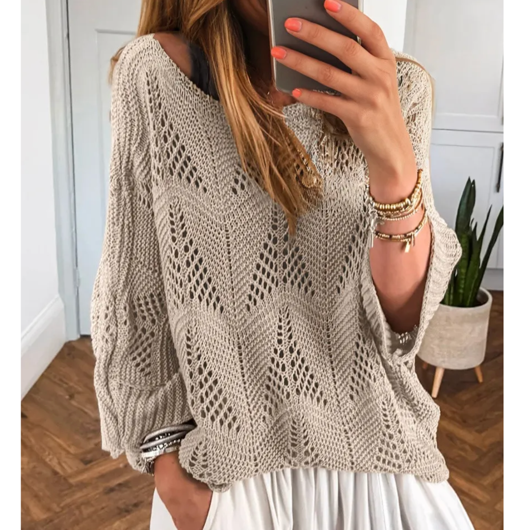 The Breezy Horizon Sweater is where effortless style meets cozy comfort. Designed with a relaxed fit and airy open-knit pattern, it’s the perfect layering piece for breezy afternoons, casual weekends, or seaside strolls. Its lightweight, breathable design makes it versatile across seasons, while the wide neckline and draped sleeves add a chic, laid-back vibe. Pair it with jeans, shorts, or flowy skirts for an effortlessly boho look.
