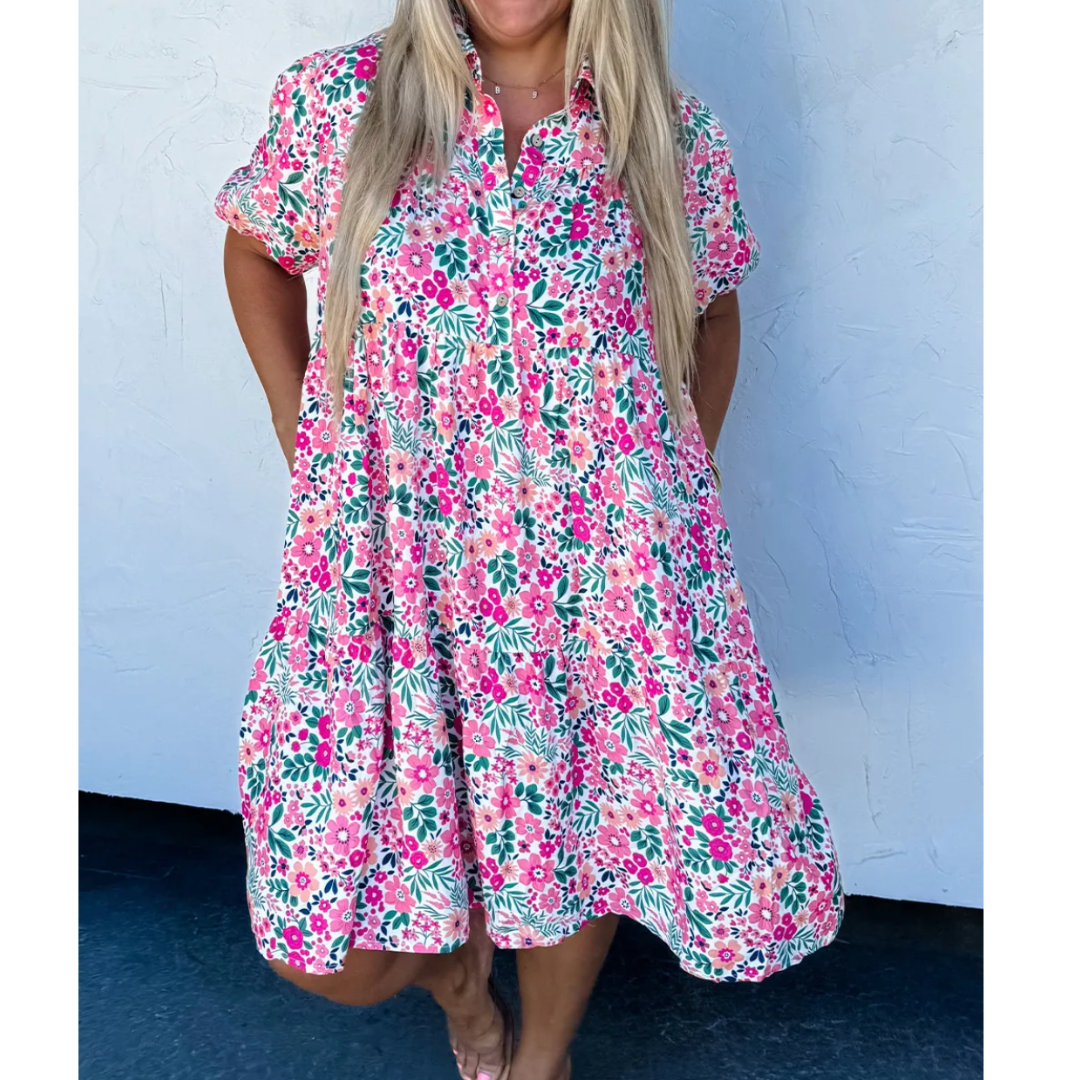 Indulge in the dreamy charm of our Dream Girl, Dream Short Sleeve Floral Dress with Pockets. This exclusive piece features a beautiful floral design, convenient pockets, and a comfortable fabric that ensures a relaxed fit. Perfect for curvy girls, this dress with a collared neck and short sleeves is a must-have addition to your wardrobe. Embrace style and convenience effortlessly - make this dress yours today! ETA 2 WEEKS