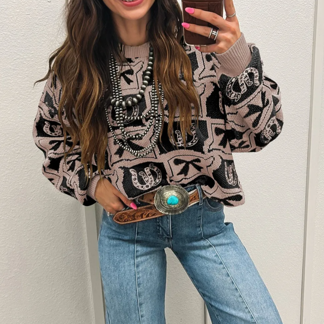 The Frosted Meadow Sweater blends cozy warmth with timeless charm. Its soft knit texture offers a relaxed yet flattering fit, while subtle detailing makes it easy to dress up or down. Whether paired with jeans for a casual outing or layered over a skirt for a chic finish, this sweater will be your go-to for effortless style.