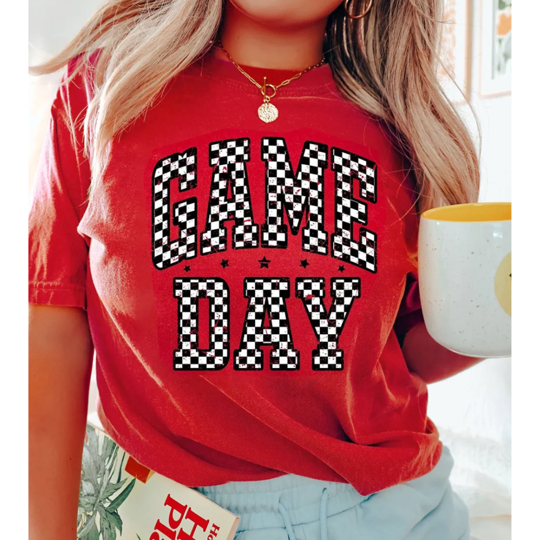 Ready, set, style! This Game Day, Huddle Up!! tee is made for those who bring the energy on game day — whether you're tailgating, couch coaching, or cheering from the stands. With bold checkered lettering and a soft, comfy fit, this graphic tee is a total crowd-pleaser. PRESALE 7/5