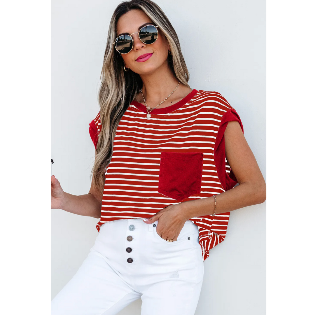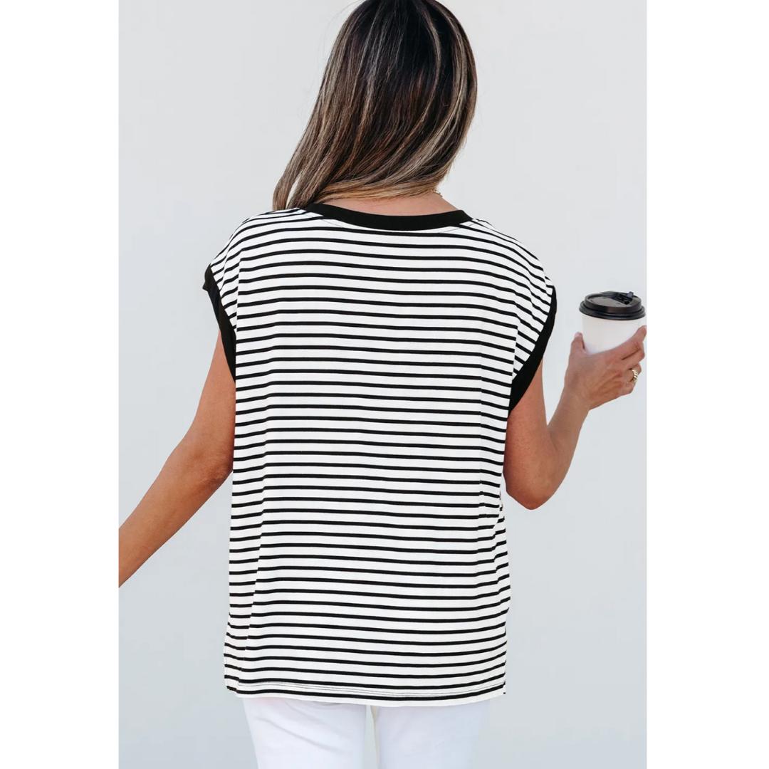 Meet For Coffee, Short Sleeve Stripe Top