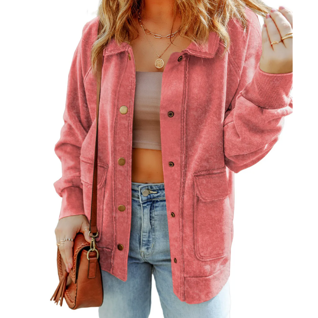 Wrap yourself in laid-back style with the Rustic Charm Mineral Wash Shacket, the perfect blend of cozy comfort and effortless chic. Designed with a relaxed, oversized fit, this shacket brings that lived-in look with its mineral-washed finish and soft, broken-in feel. Snap-button closures make layering easy, while the front patch pockets add both style and function. Pair it with jeans and boots for a casual day look or layer it over a tank for breezy evenings. Available in warm Camel, earthy Green, and rosy Mauve tones to match every mood.