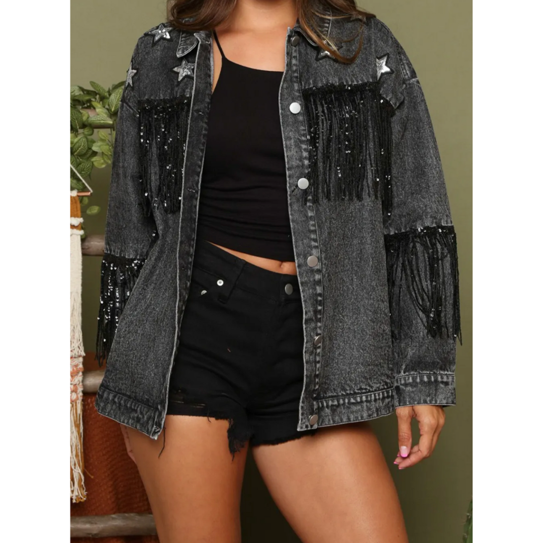 Starry Nights Sequin Fringe Denim Jacket