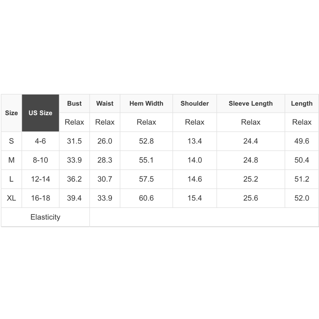 SEE SIZE CHART