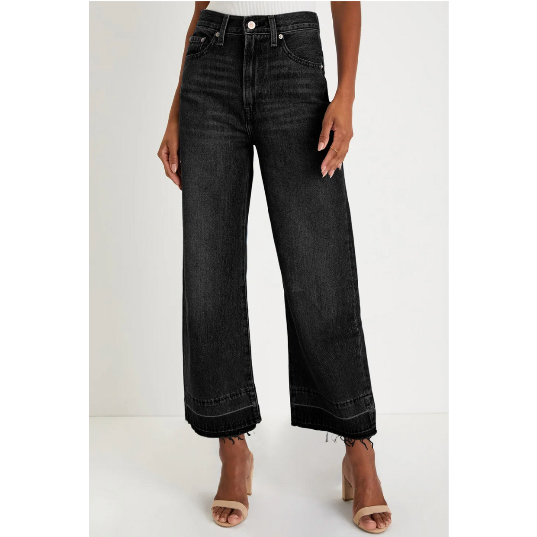 Double the options, double the style! The Twice As Cool, Raw Hem Wide Leg Jeans come in both a classic medium denim wash and a bold black wash—perfect for switching up your look with ease. These high-rise jeans feature a flattering wide-leg silhouette, edgy raw hemline with tiered detail, and a structured fit that hugs in all the right places before flowing out effortlessly. Whether you're keeping it casual or dressing it up, these jeans are your new go-to statement piece. eta 2 weeks