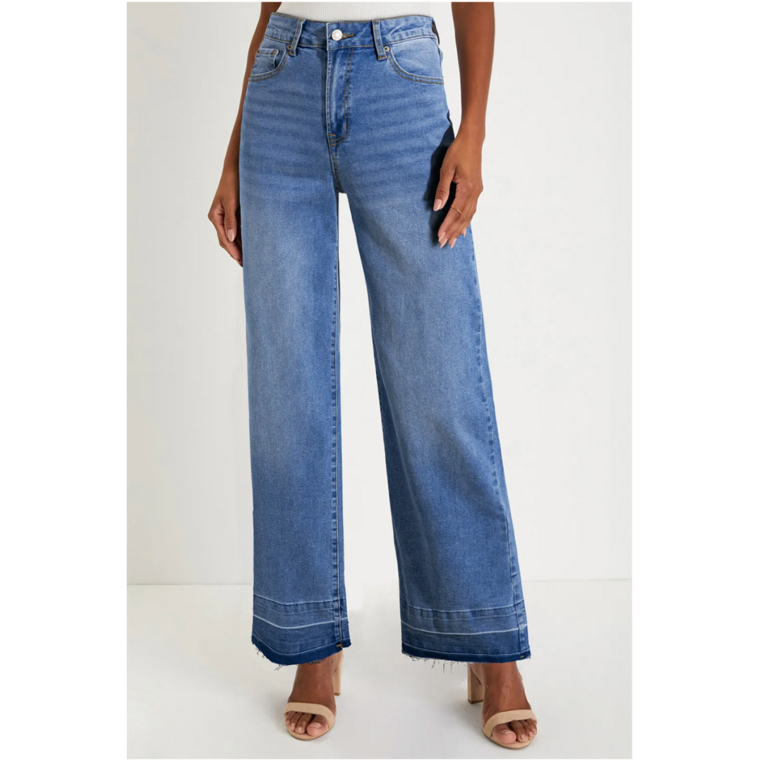Twice As Cool, Raw Hem Wide Leg Jeans